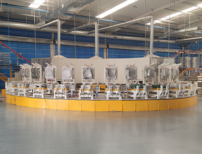 弗雷特聚氨酯環(huán)形生產(chǎn)線是一種多用途的模具傳送線,適合用于多品種批量生產(chǎn)。如汽車、觀光車座椅、摩托車座椅、汽車內(nèi)飾件PU發(fā)泡。轉(zhuǎn)盤(pán)直徑從2米到12米根據(jù)客戶需求定制。轉(zhuǎn)盤(pán)是通過(guò)減速機(jī)驅(qū)動(dòng),速度用變頻器無(wú)極調(diào)速,在轉(zhuǎn)盤(pán)放置液壓或氣動(dòng)模架,自動(dòng)開(kāi)、合模......